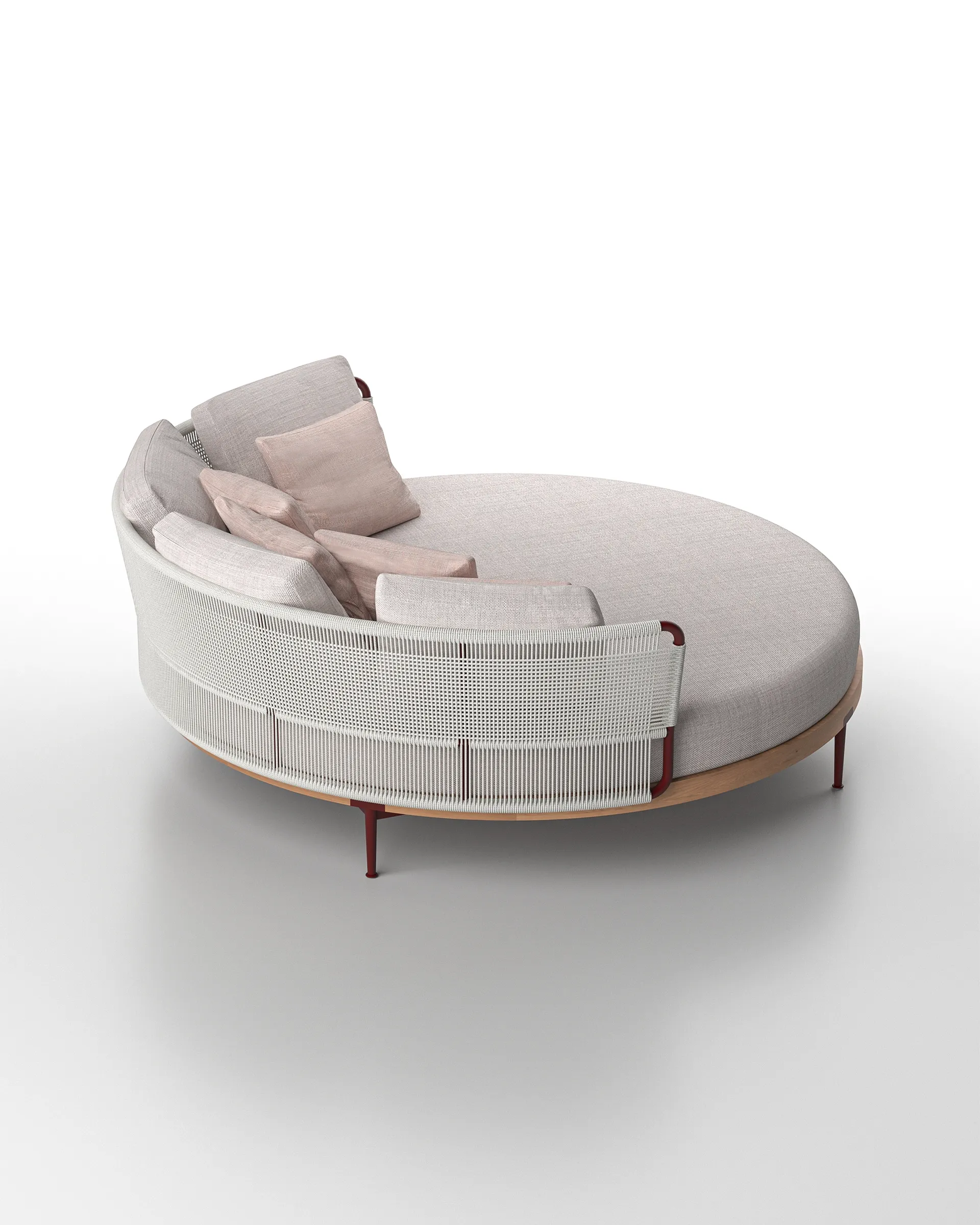 This collection celebrates purity in materials. It highlights the natural elegance of teak combined with the sleek, technical allure of aluminum. Each element is gracefully united by rope, symbolizing both connection and comfort, and bringing the circle of this lightweight, refined collection to a harmonious close.